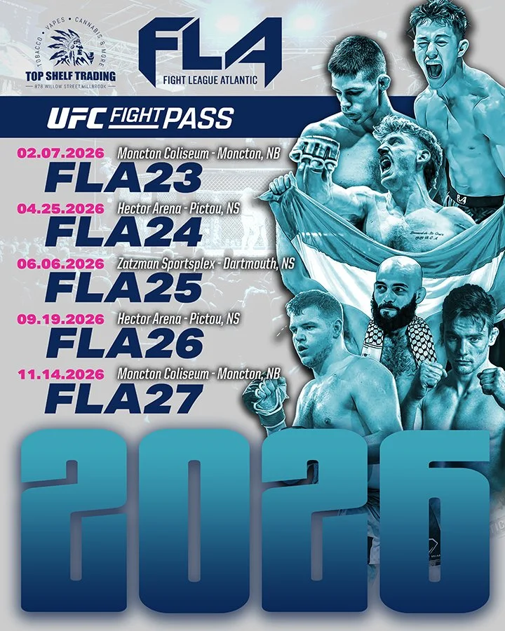 Fight League Atlantic is Eastern Canada’s premier Mixed Martial Arts promotion, dedicated to serving Canadian MMA by creating meaningful opportunities for athletes and delivering an exciting, high-quality product for fans. Our mission is to showcase top Canadian talent, support fighter development and elevate the sport across the region.