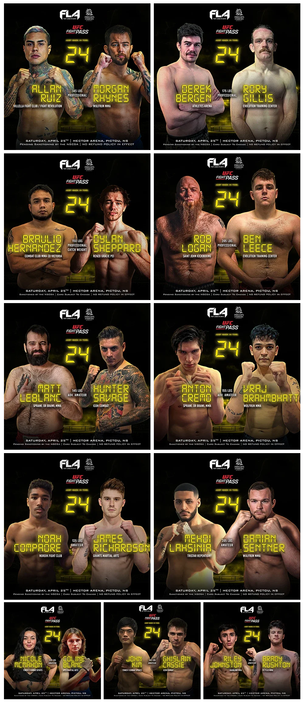 Tickets and PPV available only through fightleagueatlantic.com. General admission walkups for FLA 24 will also be available on fight night for $60 cash at the door.