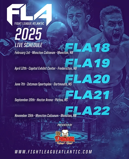 Fight League Atlantic is Eastern Canada’s premier Mixed Martial Arts promotion, dedicated to serving Canadian MMA by creating meaningful opportunities for athletes and delivering an exciting, high-quality product for fans. Our mission is to showcase top Canadian talent, support fighter development and elevate the sport across the region.
